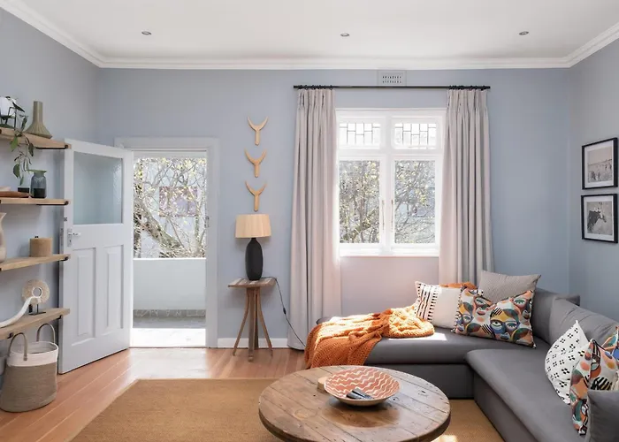 Among the self-catering amenities provided is a fully equipped kitchen with tea and coffee making equipment, a cooktop, and kitchenware. Restaurant Blue Bird Garage Food and Goods Market is right off the apartment. The property is also 5 minutes' stroll from False Bay rail station.
